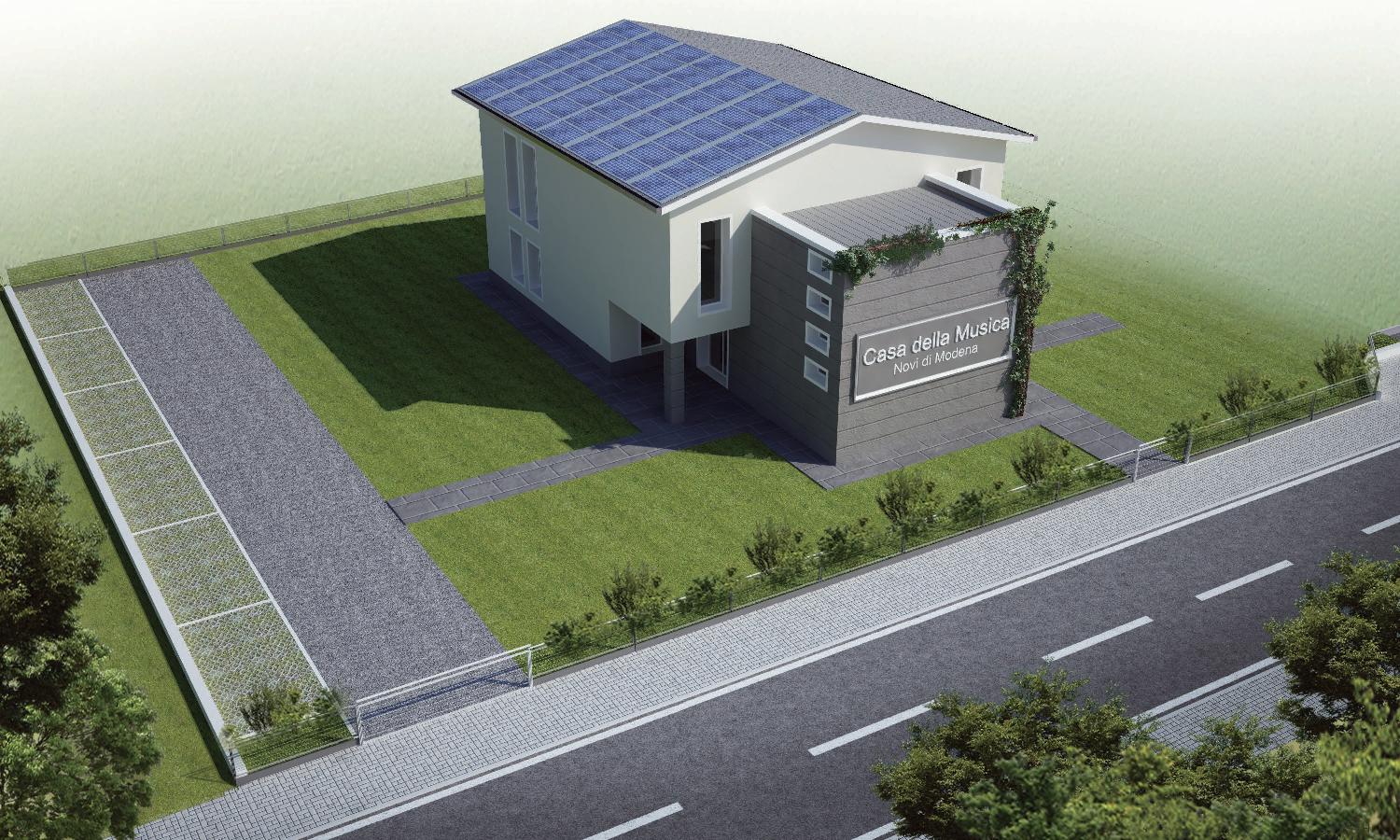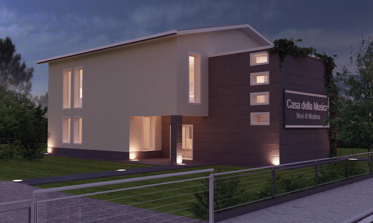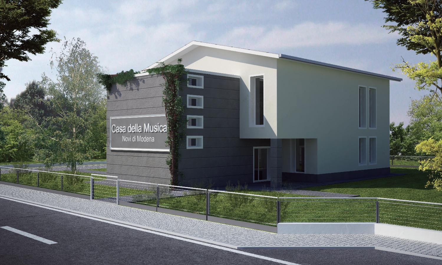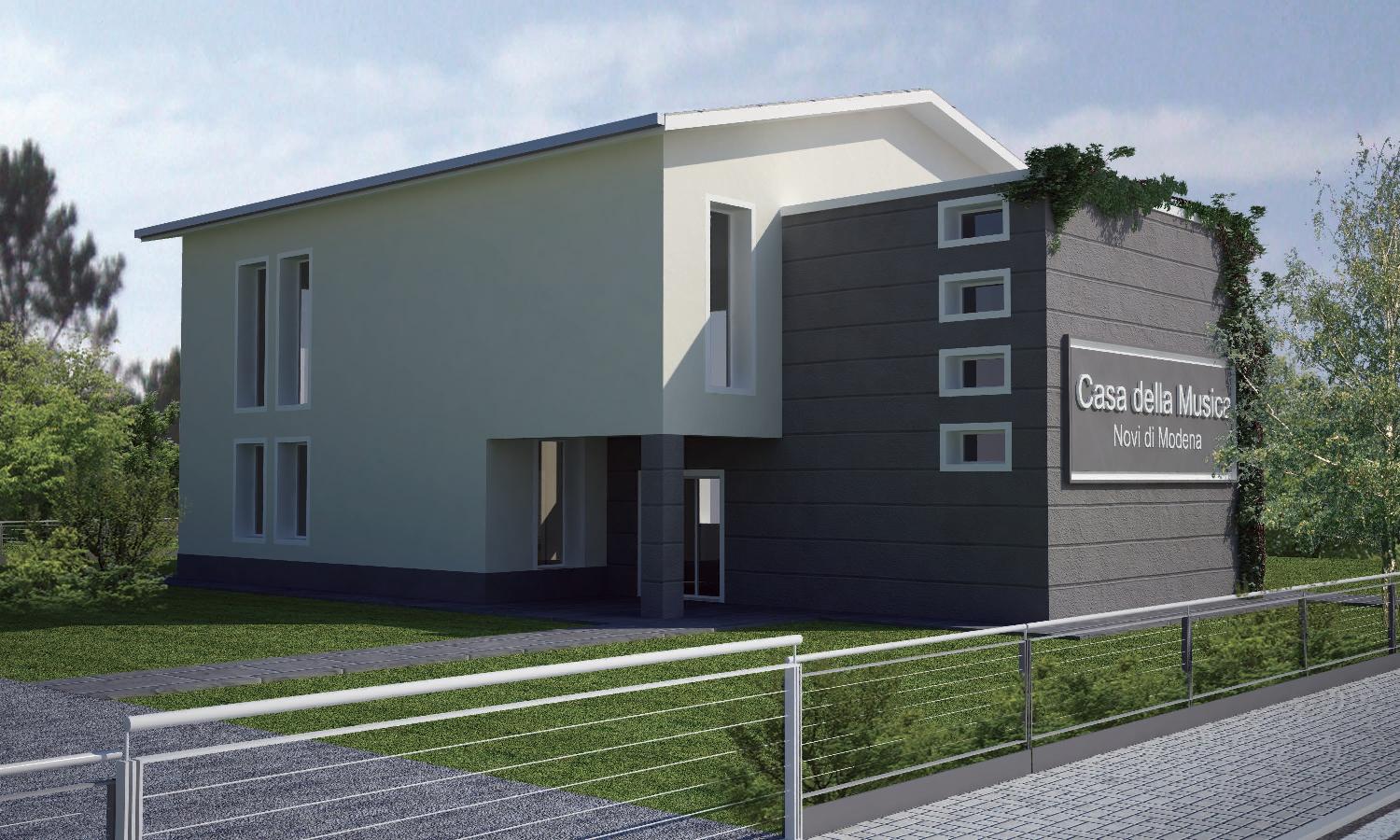 La Scuola di Musica, costruita con materiali antisismici e impianto fotovoltaico, sarà più grande della precedente e vedrà una distribuzione degli spazi più consona alle proprie esigenze. Costruita su due piani al primo prevede la realizzazione di una grande sala prove di circa 150 metri quadrati mentre a terra saranno approntate le aule didattiche, locali tecnici e di servizio e le sedi delle due associazioni. Grazie a tale disposizione si è riusciti ad aumentare gli spazi della struttura di quasi 80 metri quadrati passando dai 250 delle vecchia scuola ai 327 di quella in costruzione. Anche dal punto di vista estetico la nuova sede prevede diverse migliorie: dalla realizzazione di un porticato esterno a quella degli spazi verdi che circonderanno la struttura e che saranno in grado di ospitare eventi ed esibizioni.
